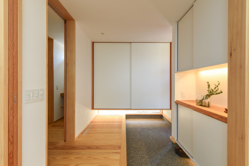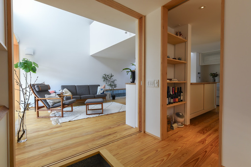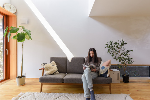 光、風、素材の表情、視線の抜けが静かに重なり合い、日々の暮らしに心地よい変化を生み出す住まい。整いすぎないからこそ生まれる安心感。その曖昧で美しい感覚を、丁寧にかたちに。