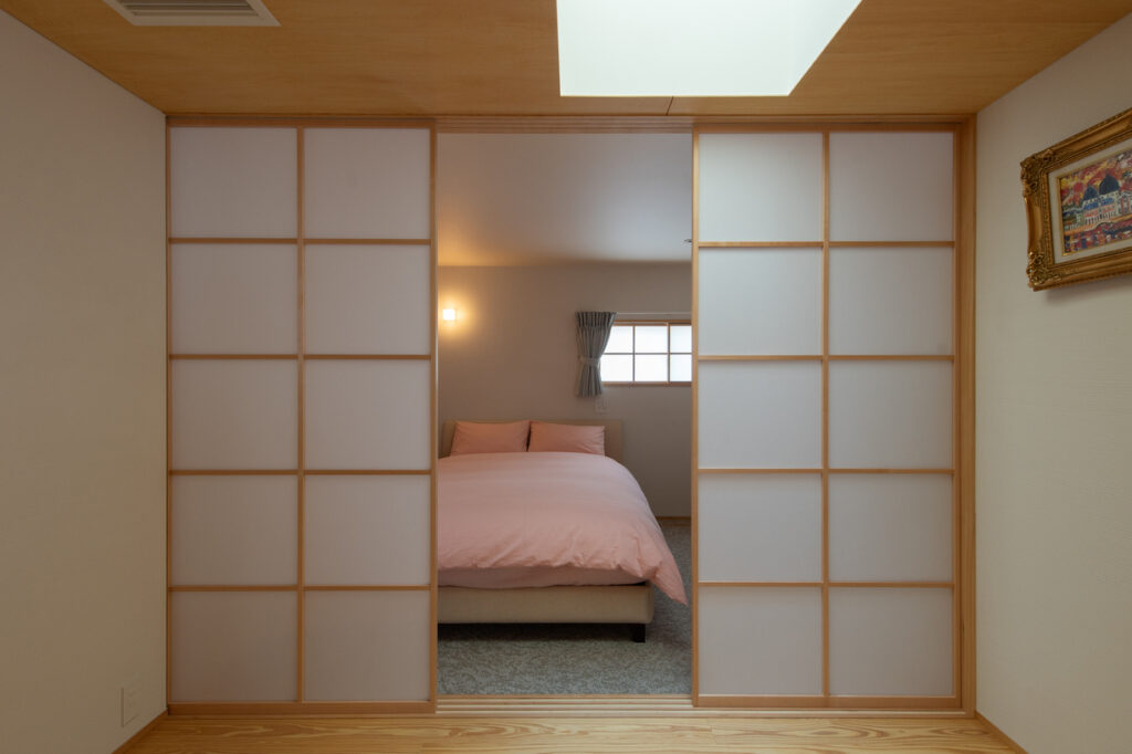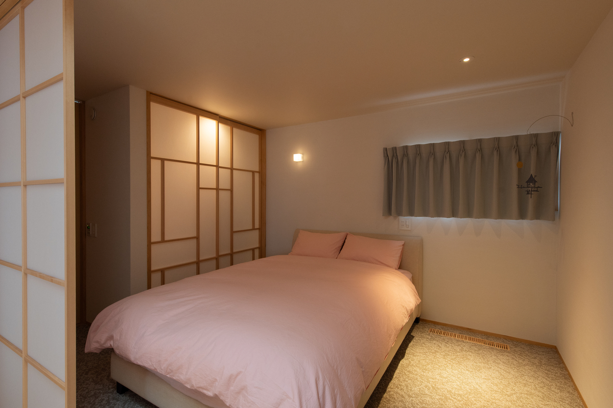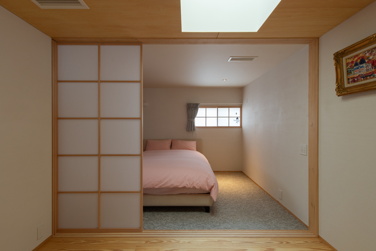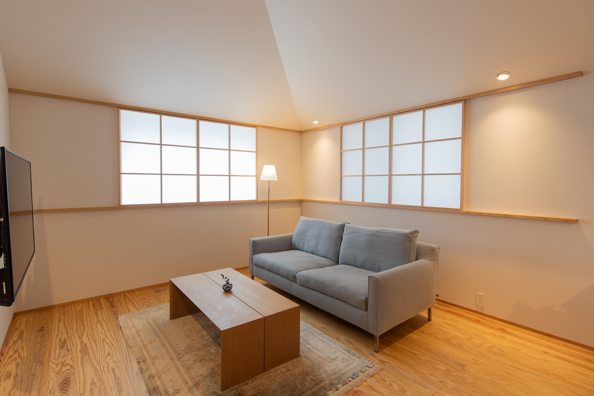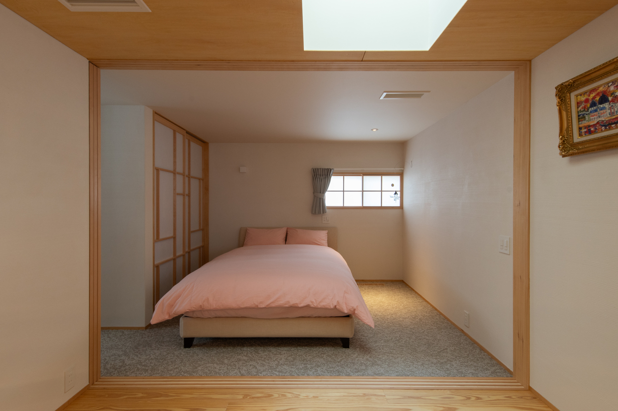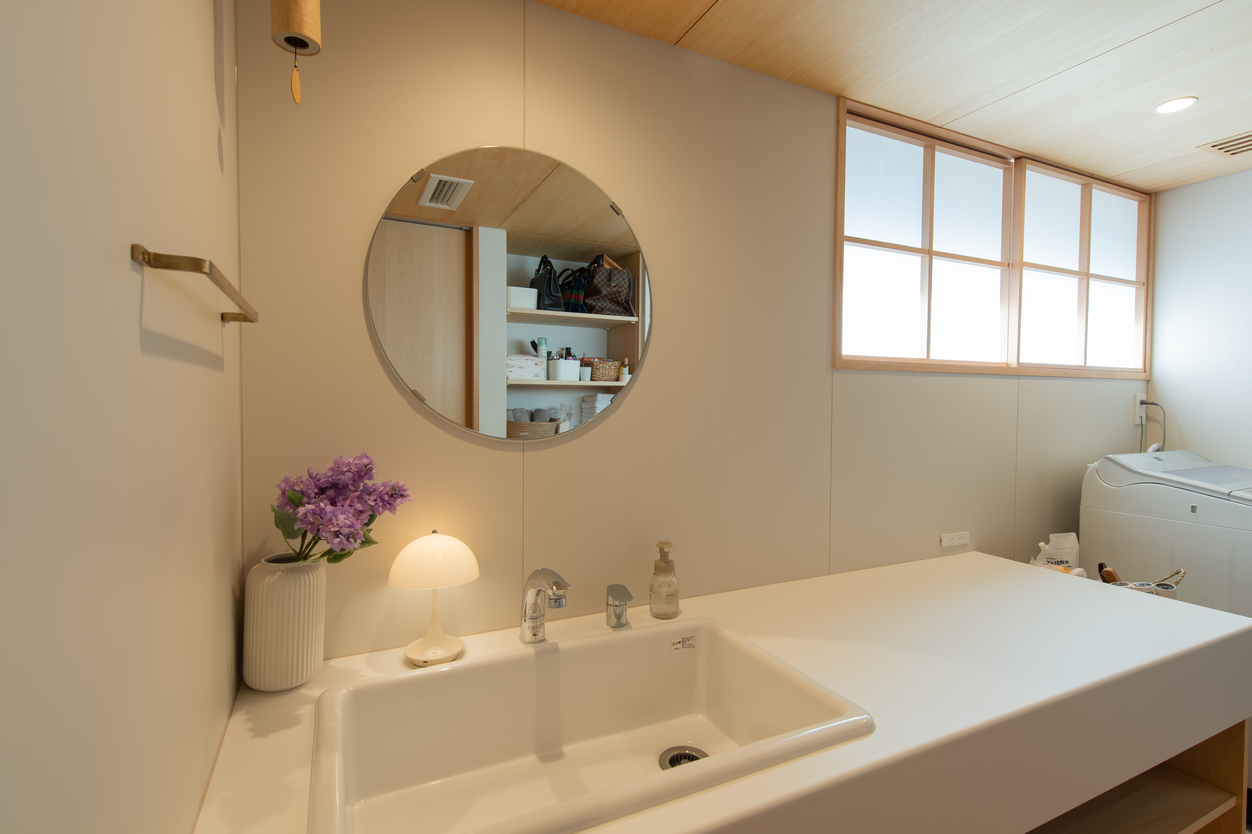 和と洋、その境界に静かに芯を置く。どこか懐かしく、それでいて今の暮らしに自然と馴染む空間。各居室には、それぞれ異なる表情と空気感を持たせ、住まいの中に緩やかな居場所の違いをつくり出した。ひとつの住宅でありながら、場面ごとに気配が変わる。美しさが日常の中に静かに息づく住まい。
