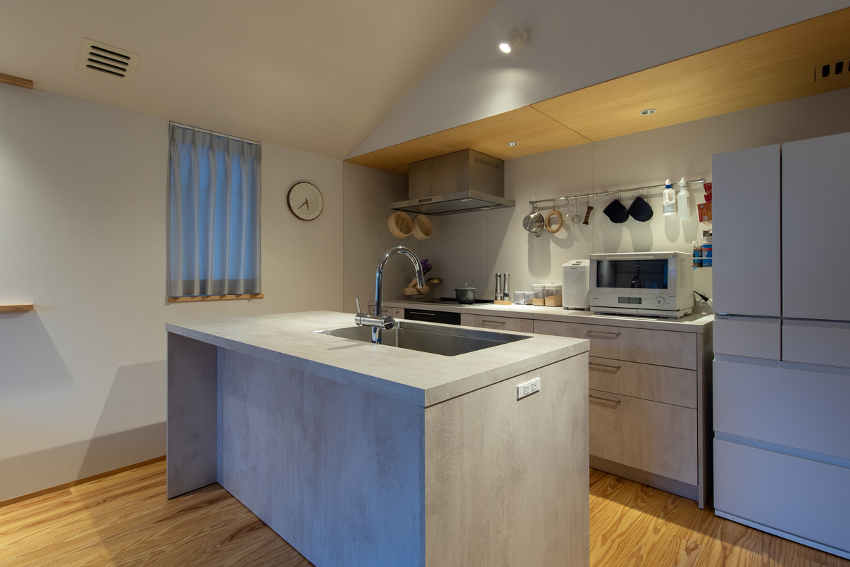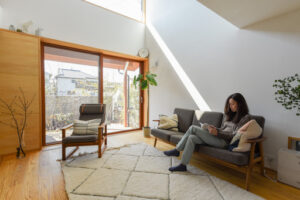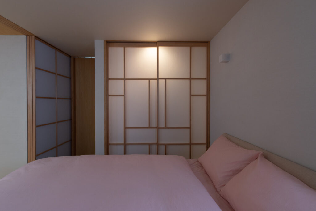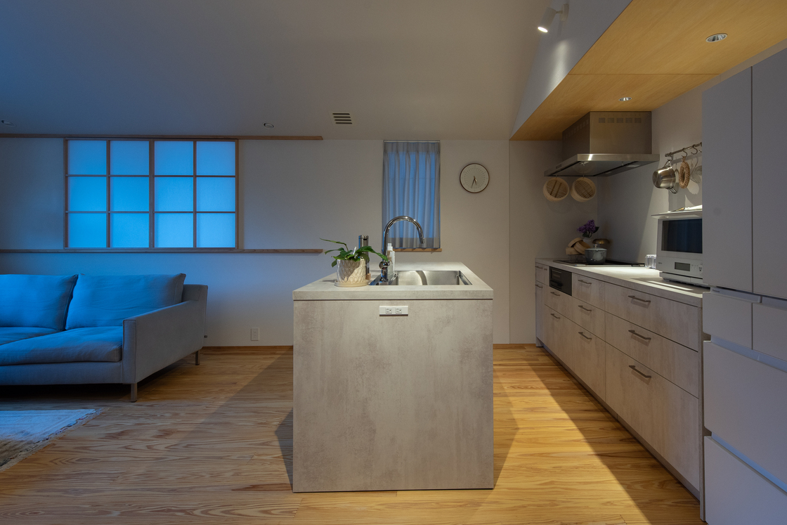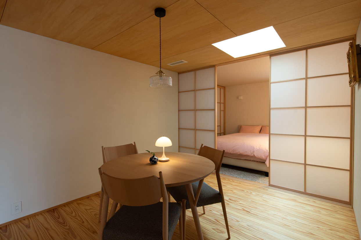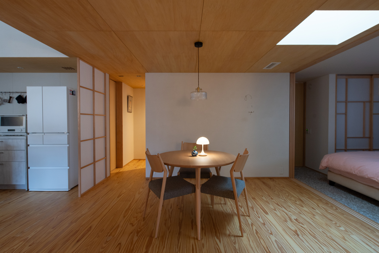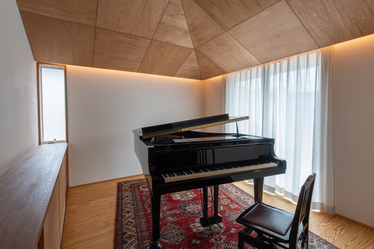和と洋、その境界に静かに芯を置く。どこか懐かしく、それでいて今の暮らしに自然と馴染む空間。各居室には、それぞれ異なる表情と空気感を持たせ、住まいの中に緩やかな居場所の違いをつくり出した。ひとつの住宅でありながら、場面ごとに気配が変わる。美しさが日常の中に静かに息づく住まい。
