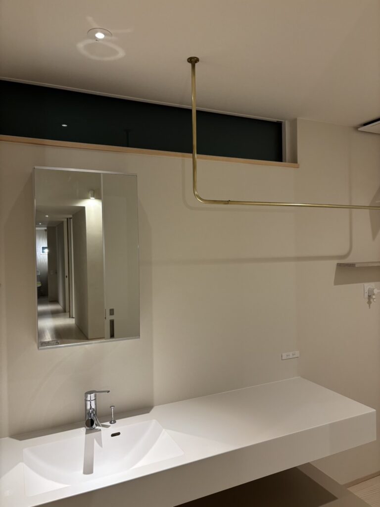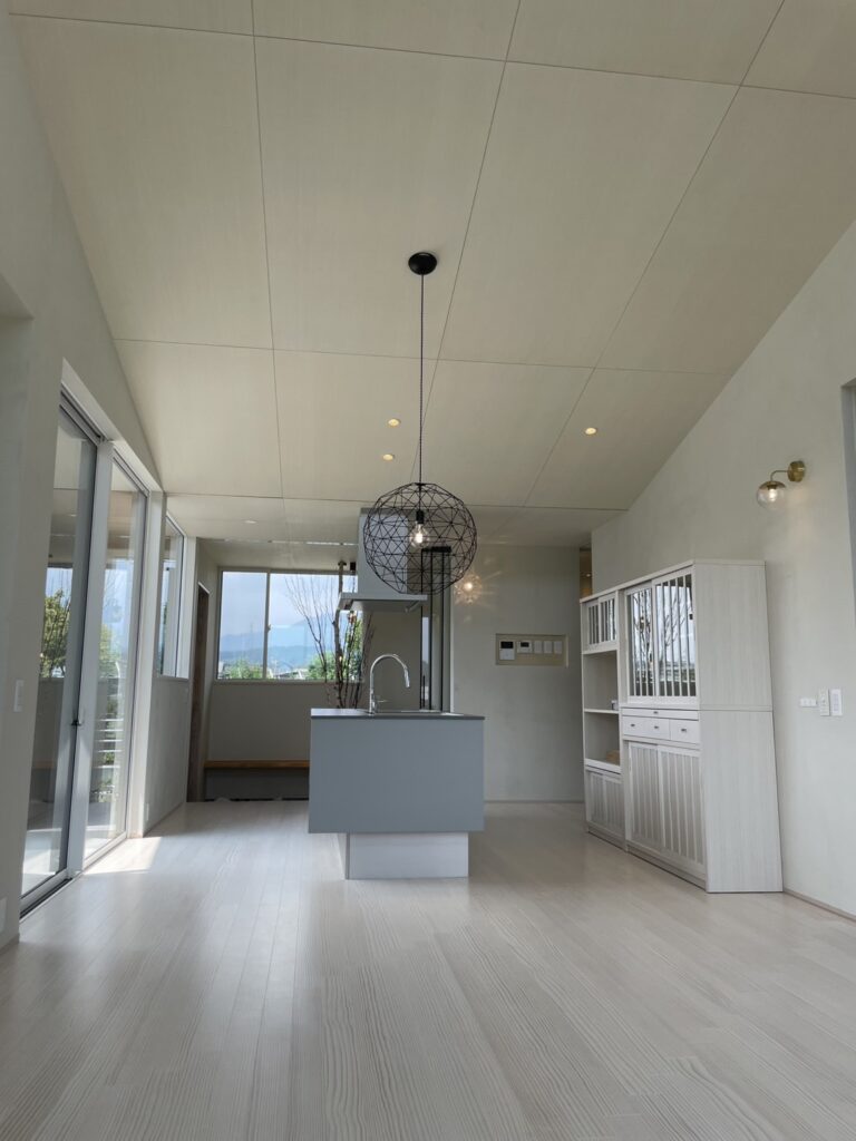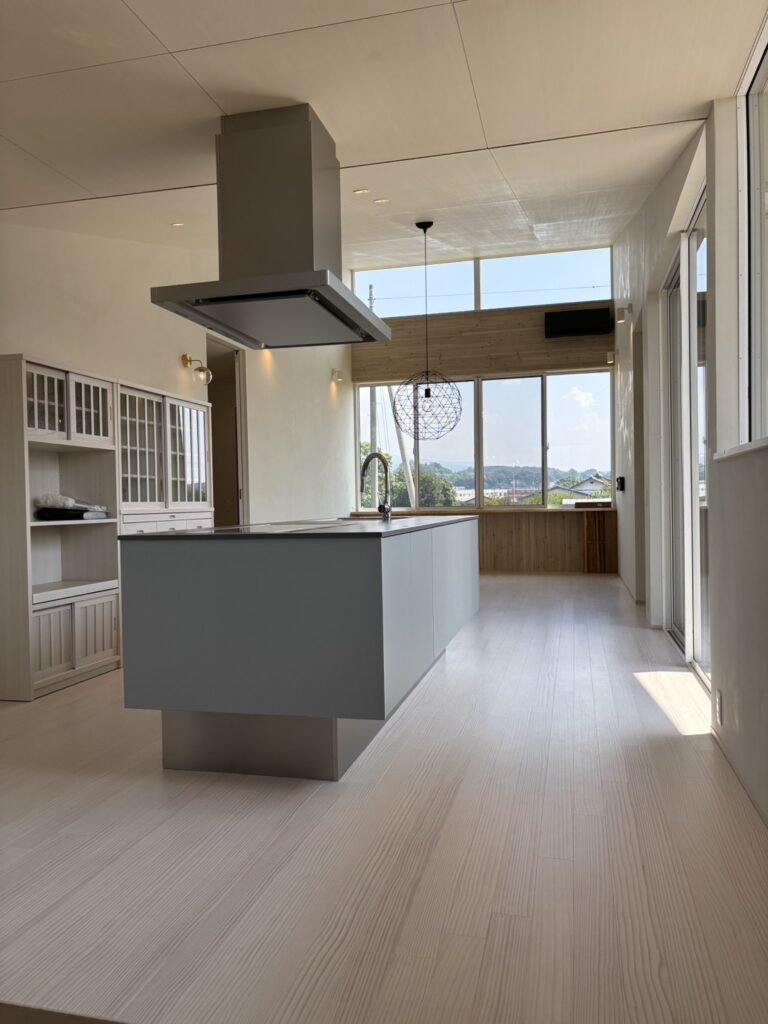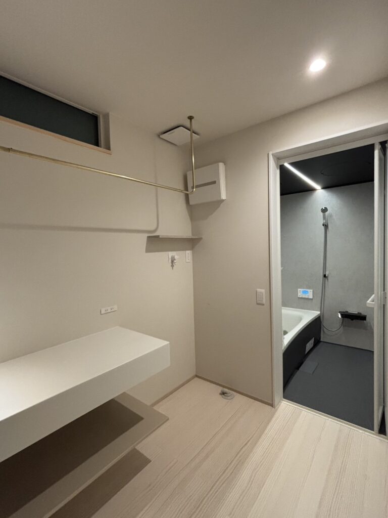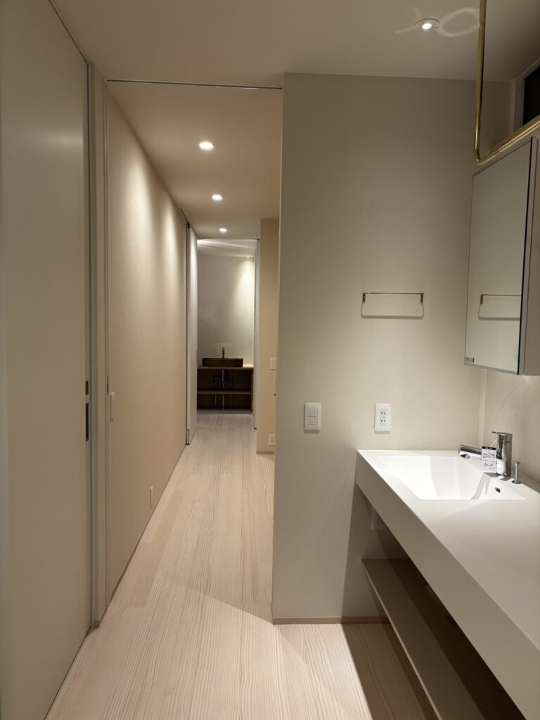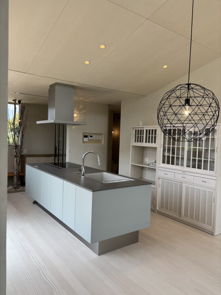 光と影、素材の質感、視線の抜けがゆるやかにつながり、日常の中に小さな余白と安らぎをつくる住まい。